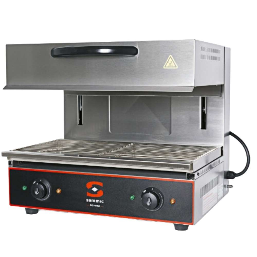 Salamandra SG-652 Sammic 5130279, con techo móvil ajustable, acero inoxidable, resistencias superiores y termostato regulable, ideal para asar y gratinar con potencia de 4000 W.