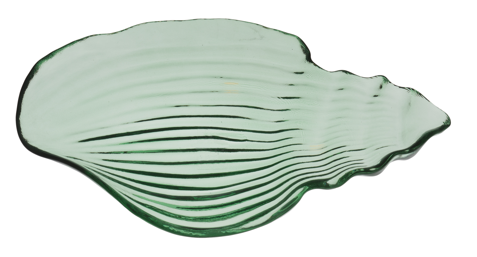 Plato llano forma de caracola de vidrio Verde "Seacone" 29x18cm. ARDACAM 6493 (Seis unidades)