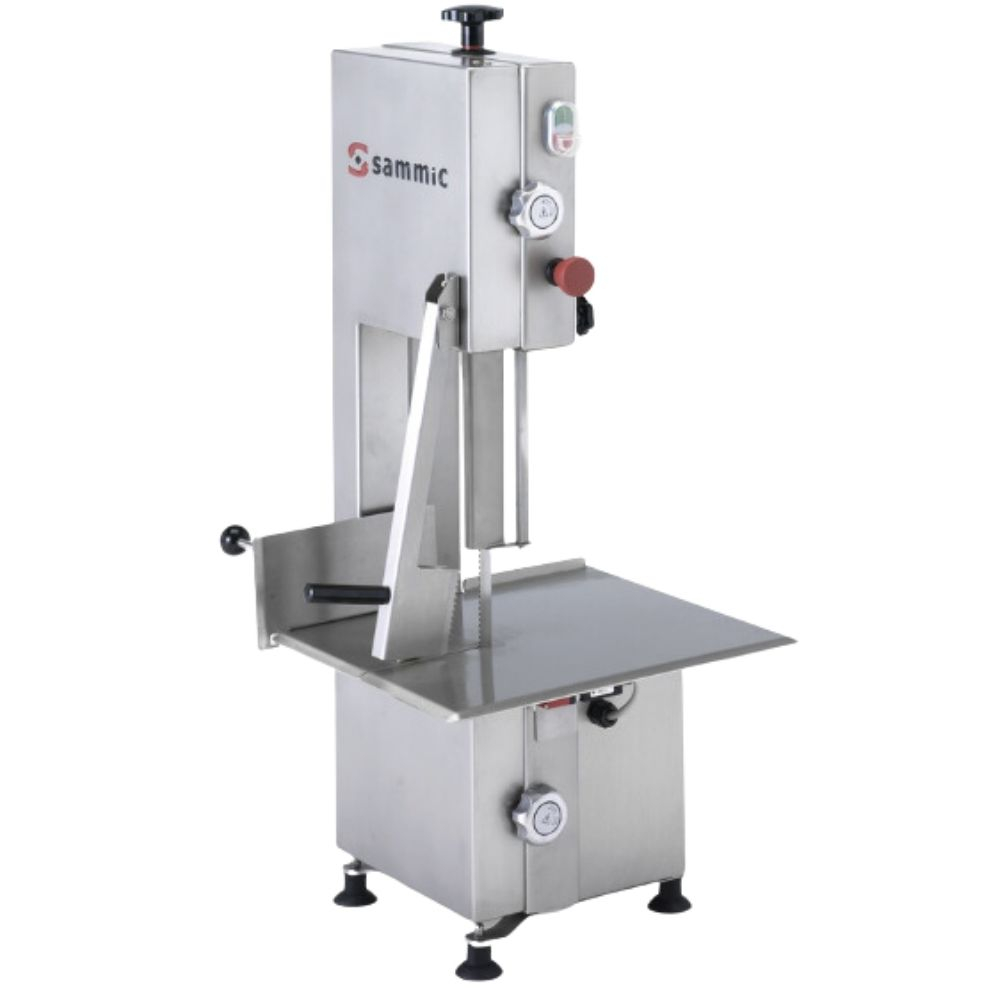 Cortadora/Sierra de huesos Sammic SH-155 trifásica. Potente motor de 750 W, corte de 215 mm y espesor máximo de 170 mm. Fabricada en acero inoxidable.