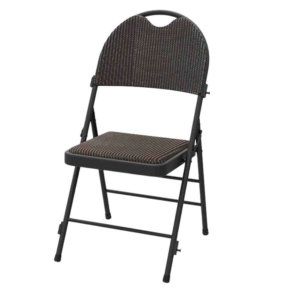 Silla plegable tapizada y acolchada, con asa para fácil manejo. Ideal para conferencias, reuniones y eventos corporativos. Resistente y cómoda.