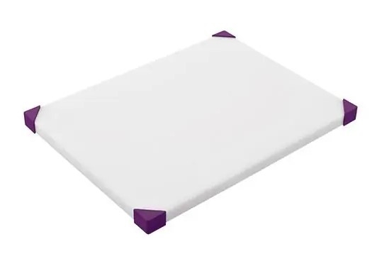 La tabla de corte de polipropileno Antialérgenos, libre de BPA, destaca por sus dimensiones de 404x304 mm y una altura de 24 mm (Ref. 60102). Su característico color morado la hace ideal para el manejo de alimentos para personas con alergias. Equipada con apoyos antideslizantes, esta tabla proporciona una superficie segura y estable para el trabajo, asegurando la máxima seguridad durante el proceso de corte en la cocina.