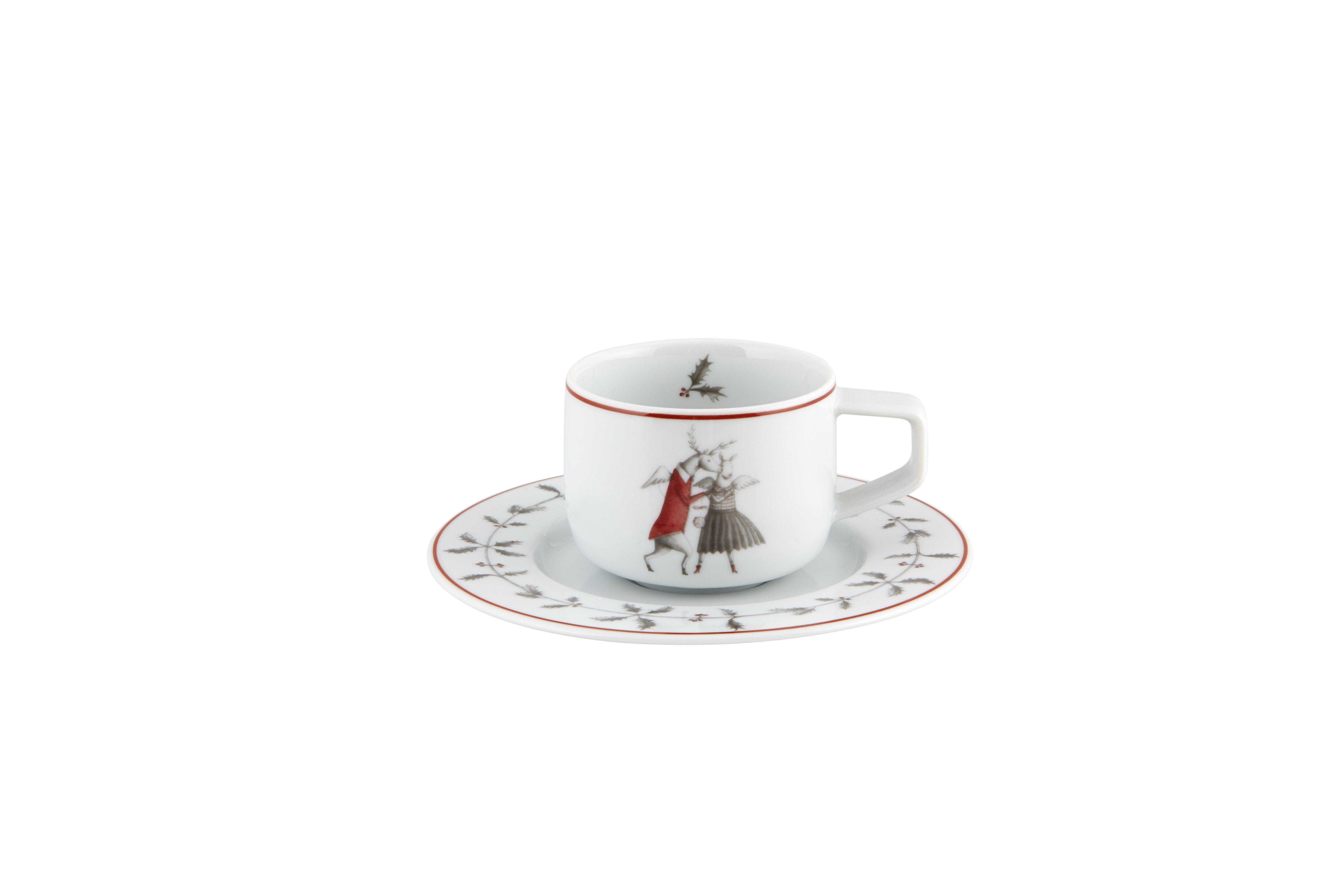 Taza de café moka con platillo porcelana decoración navideña Noel "Danza". Dimensiones: Ø 12,6 cm x 4,8 cm capacidad 9,1 cl, pes