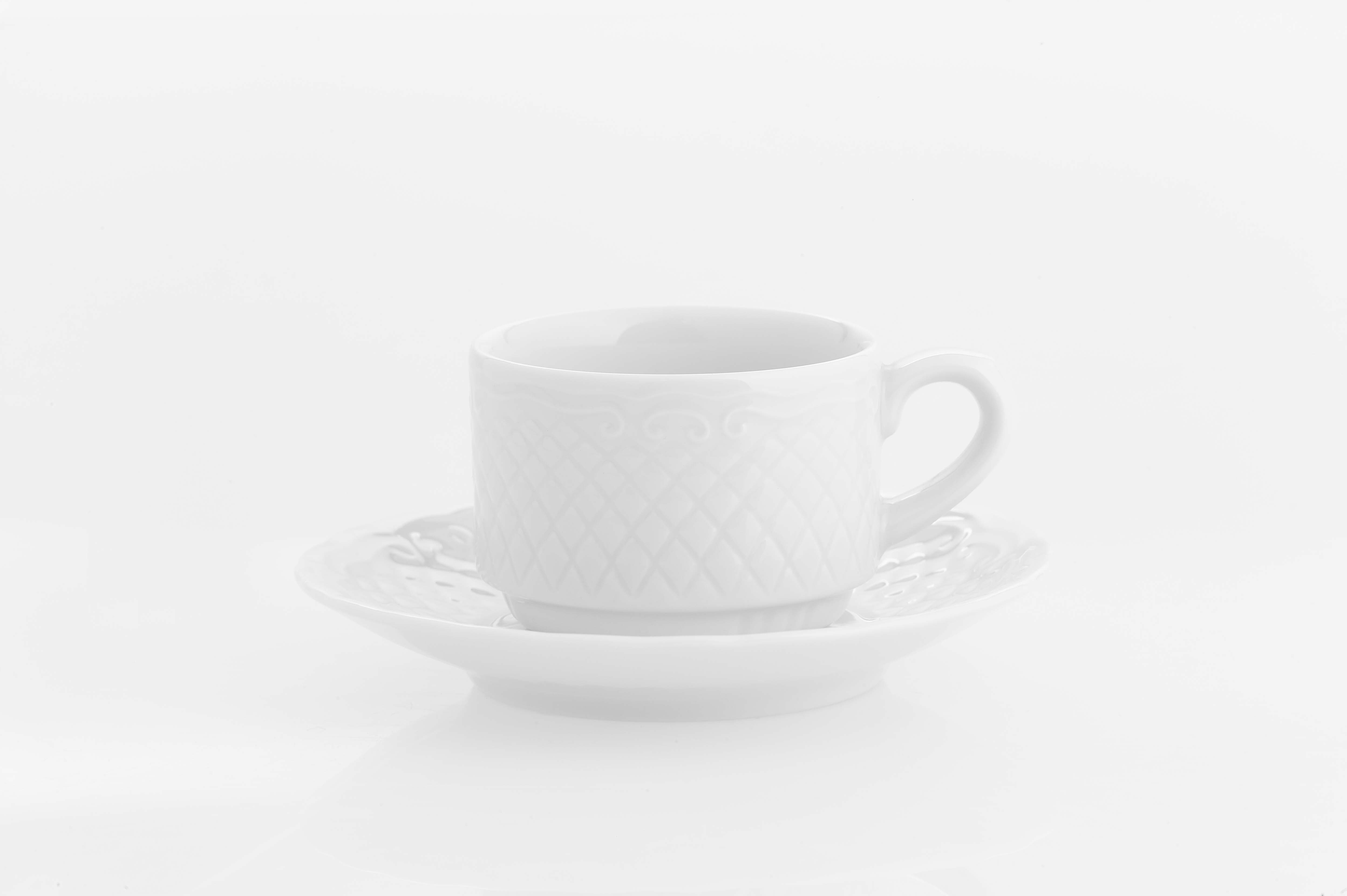 Taza de café moka en porcelana blanca grabada Escorial. Capacidad: 10 cl. Vista Alegre 21078462 (12 unidades)