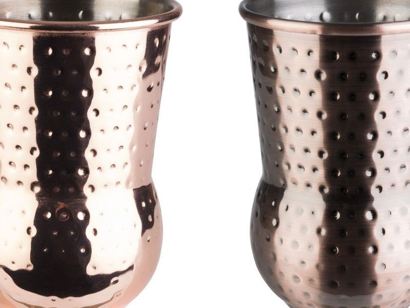 Taza de acero inoxidable con aspecto de cobre martillado ideal para servir cualquier cóctel de una forma diferente gracias a esta taza de aspecto único y diferente.