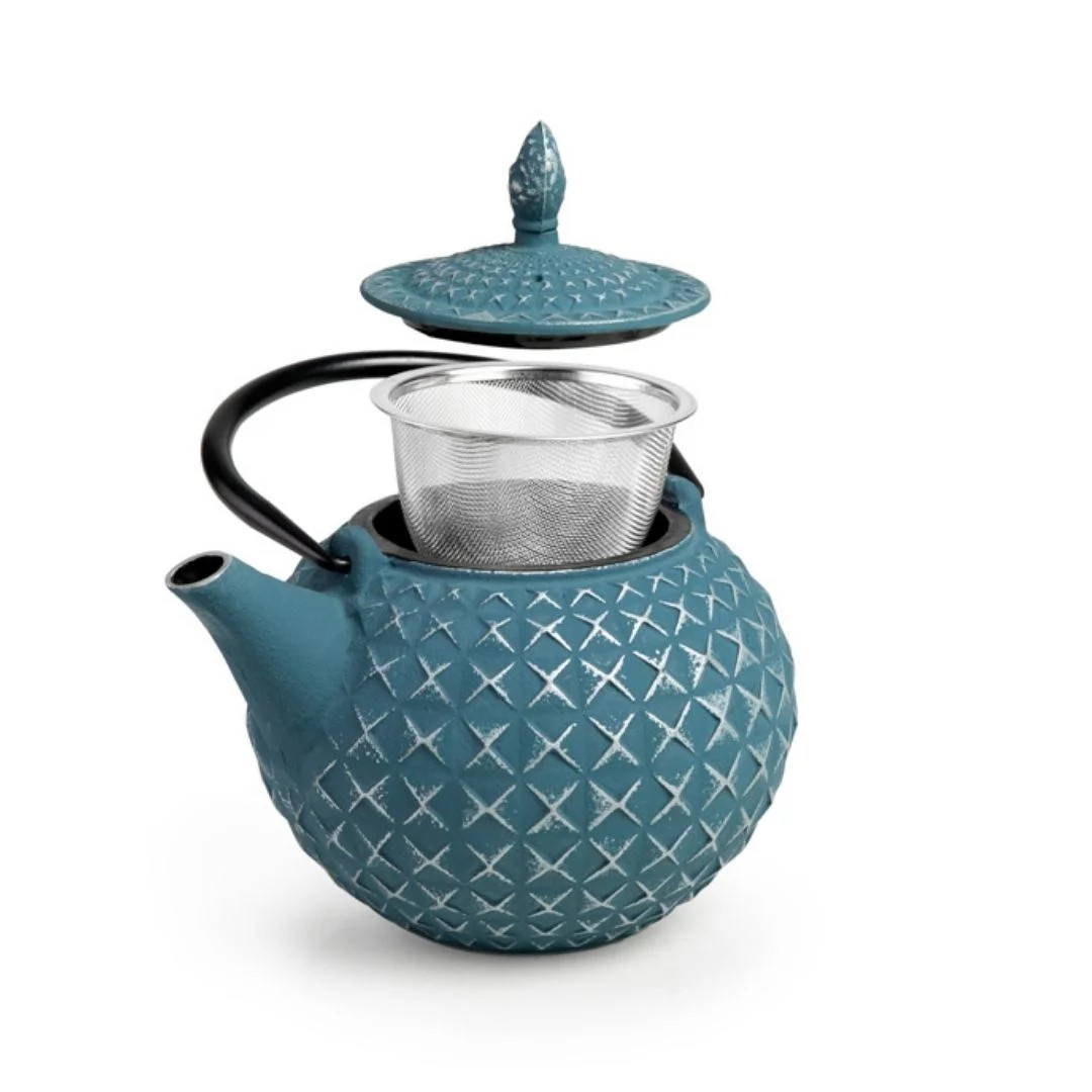 Tetera de hierro fundido Daca con interior esmaltado y filtro inox. Diseño decorativo y alta retención del calor para hostelería.