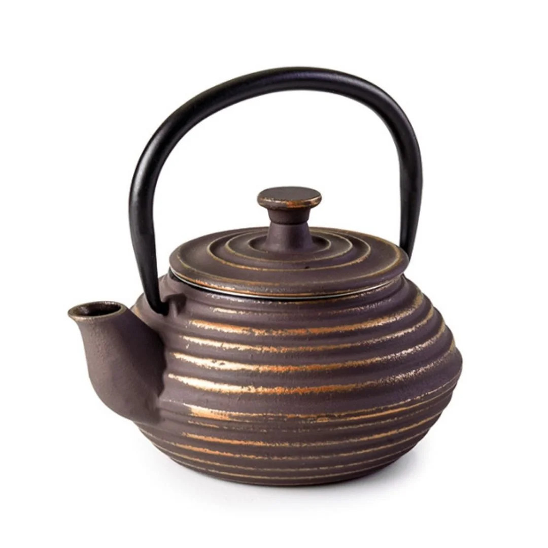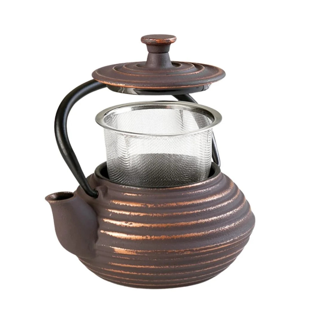 Tetera de hierro fundido Luang con interior esmaltado y filtro inox. Diseño decorativo y alta retención del calor para hostelería.