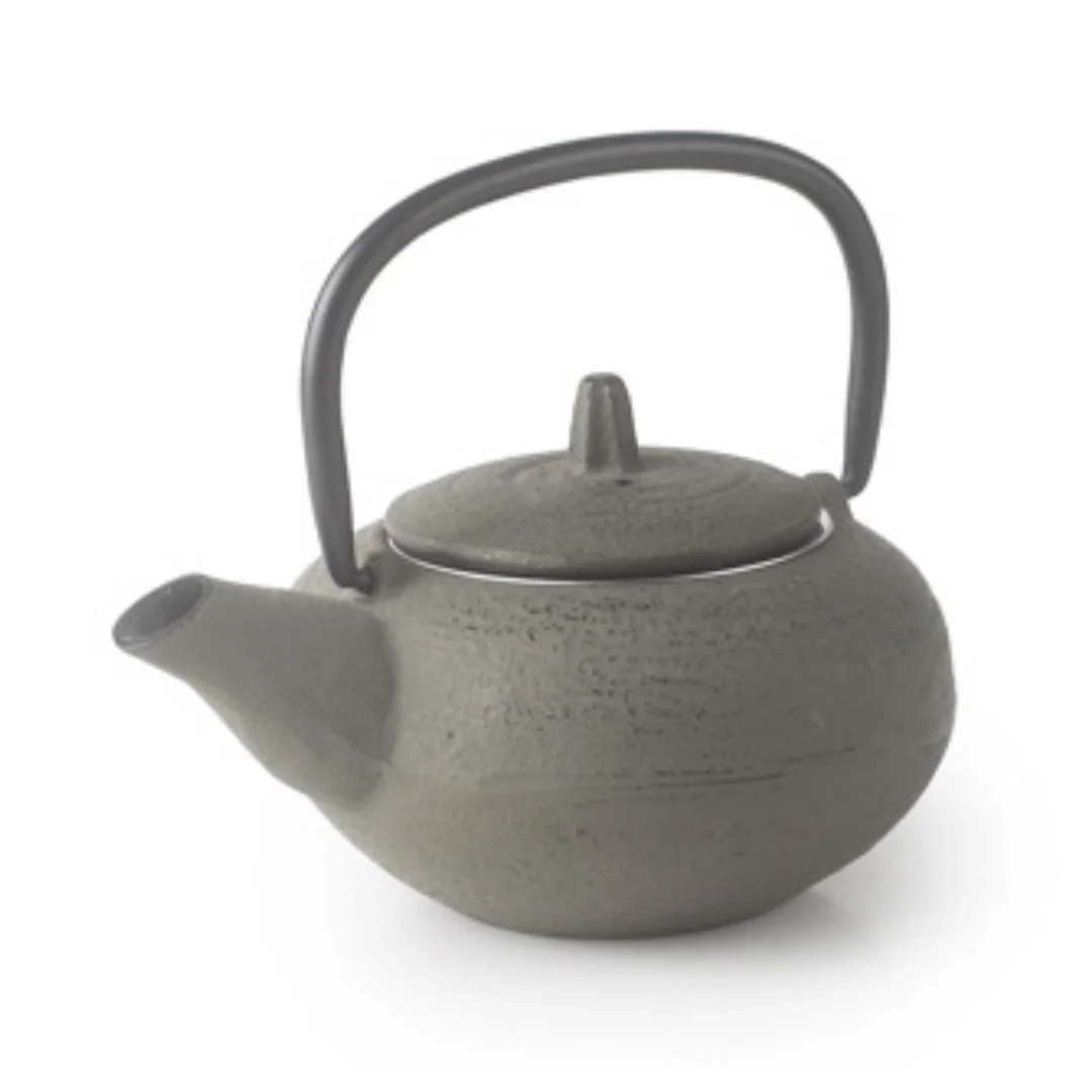 Tetera de hierro fundido Laos con interior esmaltado y filtro inox. Diseño compacto y resistente, ideal para servicio individual en hostelería.