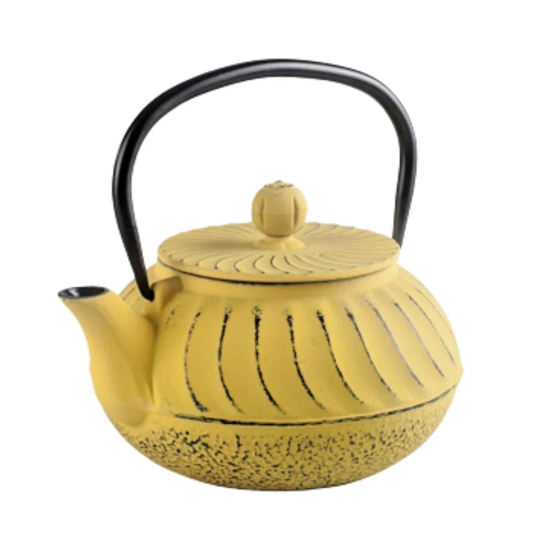 La tetera Luang de hierro fundido está inspirada en las teteras japonesas tradicionales tipo tetsubin, destacando por su diseño con relieve vertical y acabado en tono amarillo que aporta un toque distintivo en mesa.