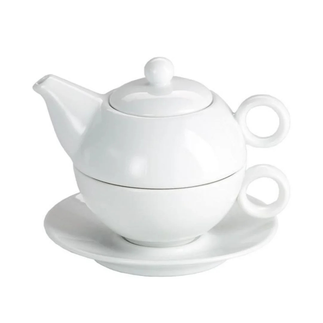 Tetera individual de porcelana blanca de 25 cl con platillo. Solución compacta y elegante para servicio de té en hostelería.