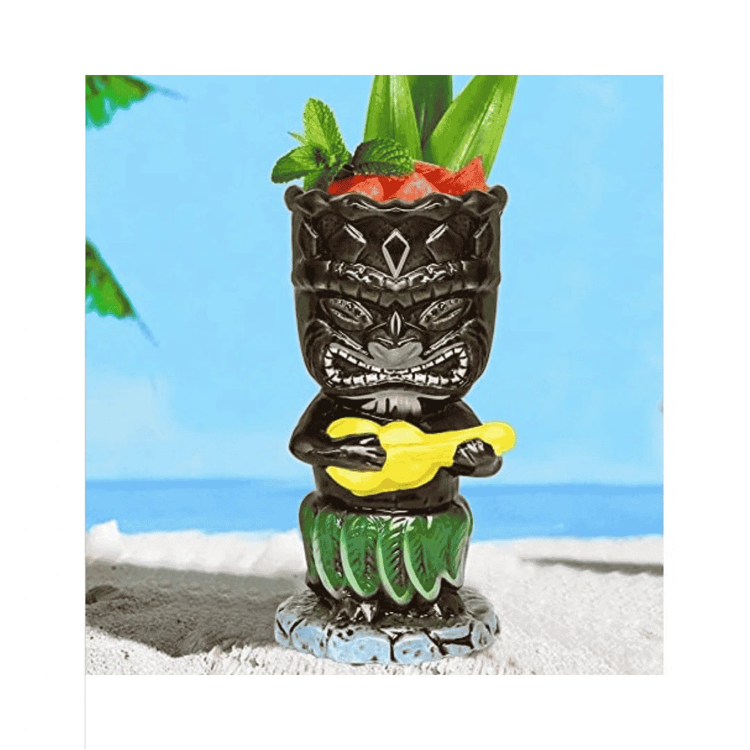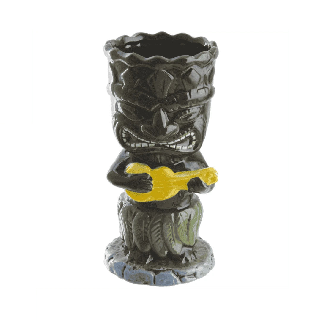 El “Guerrero de la Guitarra” es un vaso tiki de cerámica esmaltada con un relieve detallado que combina estética tribal y colores vivos. Con 34 cl de capacidad y formato Ø 8 × 16,5 cm, es perfecto para Mai Tai, Jungle Bird o creaciones de autor con hielo pilé, frutas y garnishes. Una pieza de fuerte impacto visual que ayuda a diferenciar tu carta y a mejorar la experiencia del cliente.