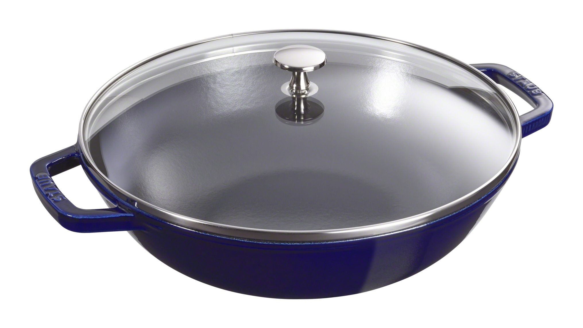 El wok redondo de la marca STAUB es extraordinariamente versátil. Puede emplearse para saltear, freír, cocinar al vapor o a fuego lento una gran variedad de deliciosas recetas orientales como los fideos fritos. Los woks de hierro colado son un excelente conductor del calor, que se distribuye por toda la superficie del recipiente. Además, la retención del calor ayuda a cocinar fácilmente con una temperatura estable. El interior esmaltado en negro mate mejora la capacidad de cocinar a fuego lento, es duro y resistente a las rayaduras. A diferencia de otros materiales la superficie del hierro fundido mejora con el tiempo y el uso.Este wok forma parte de la serie STAUB Especialidades, mide 30 cm de diámetro y tiene una capacidad de 4,4 l. Es apto para toda clase de fuentes de calor. Se complementa con una tapa de cristal.Como todo el hierro colado ha de calentarse progresivamente evitando choques térmicos. De igual modo antes de lavar siempre hay que dejar enfriar